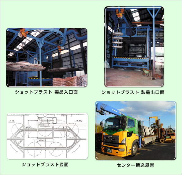 神戸市西区に整備工場兼屋内外保管施設(神戸機材センター)があり、ここを拠点として鉄鋼製品の整備・保管・入出庫作業をおこなっています。天井クレーンやホイストを配した整備工場には、ショットブラスト(鉄鋼製品表面処理機=機械内に入れた製品に対し、粒状の投射材を打ち付けて製品への付着物を除去する装置)を設置しており、お預かりした製品の塗膜、錆び、付着コンクリートなどに対する十分な剥離処理が可能です。更に、製品に対する塗料、防錆油の塗布や簡易加工、補修なども手掛けており、トータル的な作業を実施しています。センター内には1.5t〜4.5tの製品を吊ることのできる特殊フォークリフトを配備しており、機動的な入出庫作業をおこなっています。